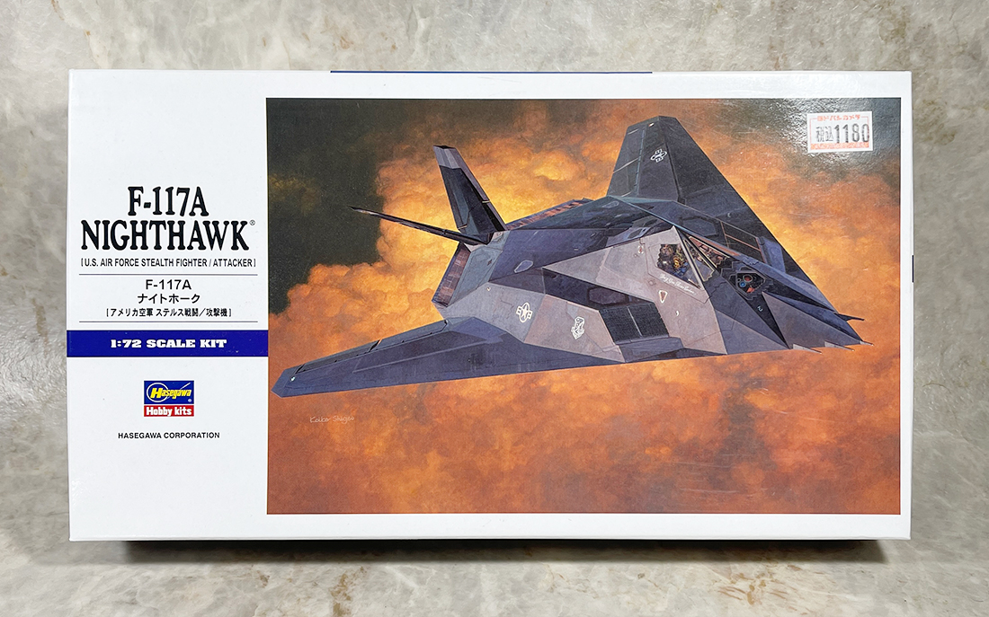 ハセガワ 1/72 F-117 ナイトホークを作ろうと思います。1999年の発売以来何回作ってきましたかね。最近再販されたみたいなので手持ちのストックをひとつ開封してみました。