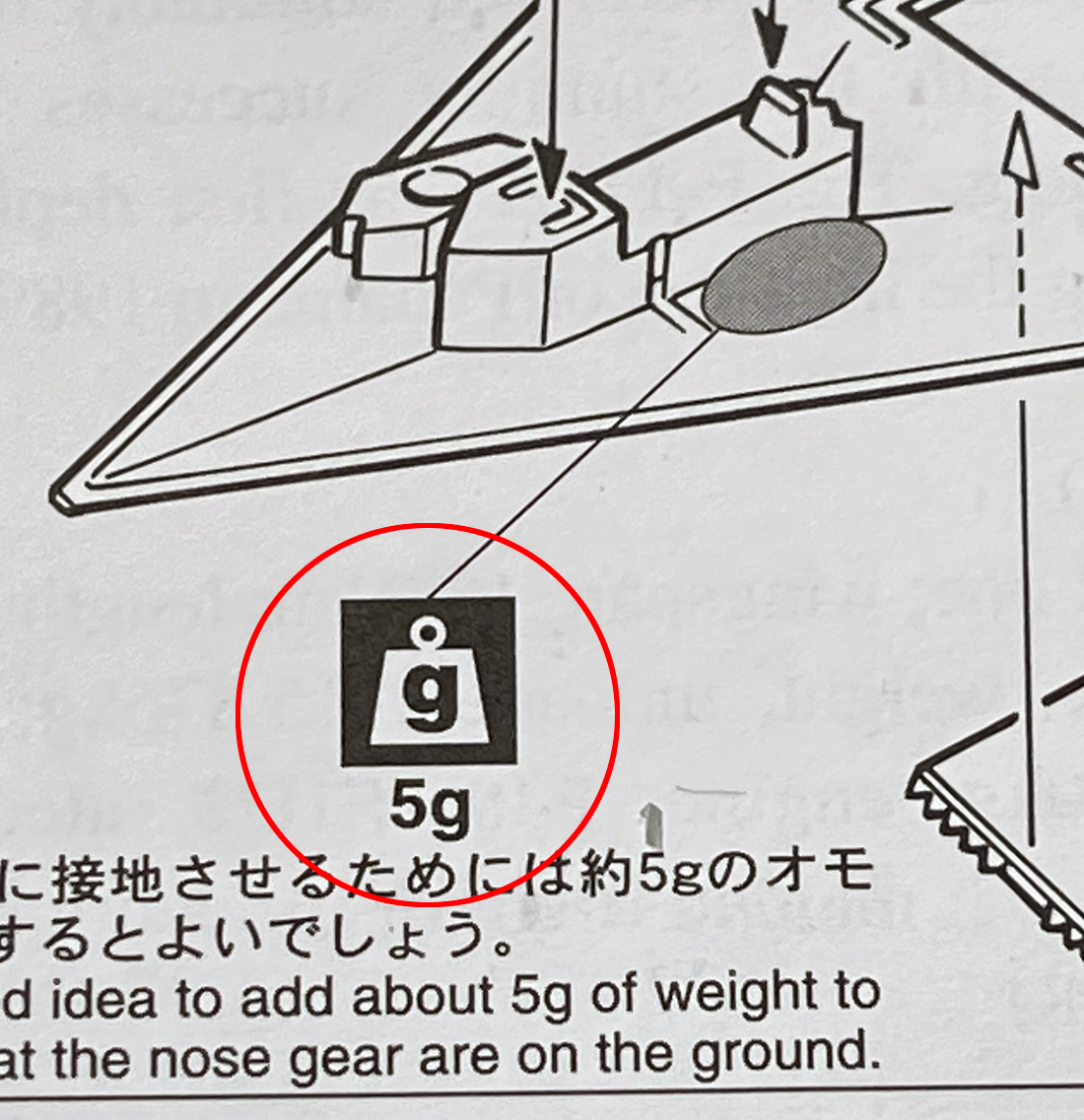 あと飛行機モデルといえばオモリですね。機首に仕込みましょうね。組立説明書には5gと書かれていますが手緩いと思いますね。仕込めるだけ仕込んだ方が安心感も安定感も増します。