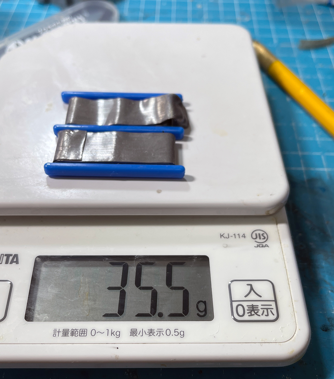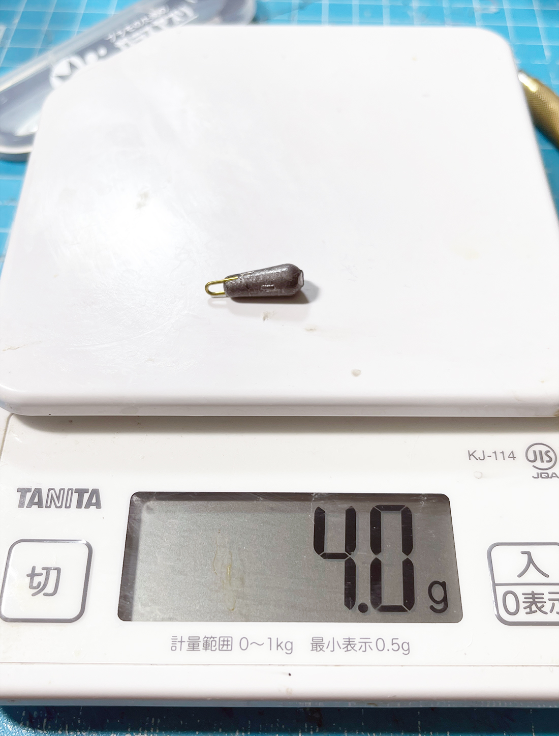 まずオモリを取り付ける部品の重さを計ります。