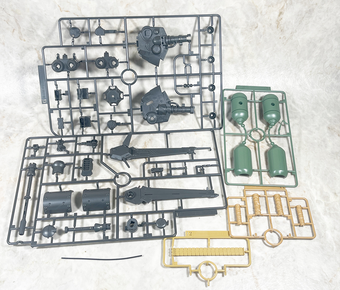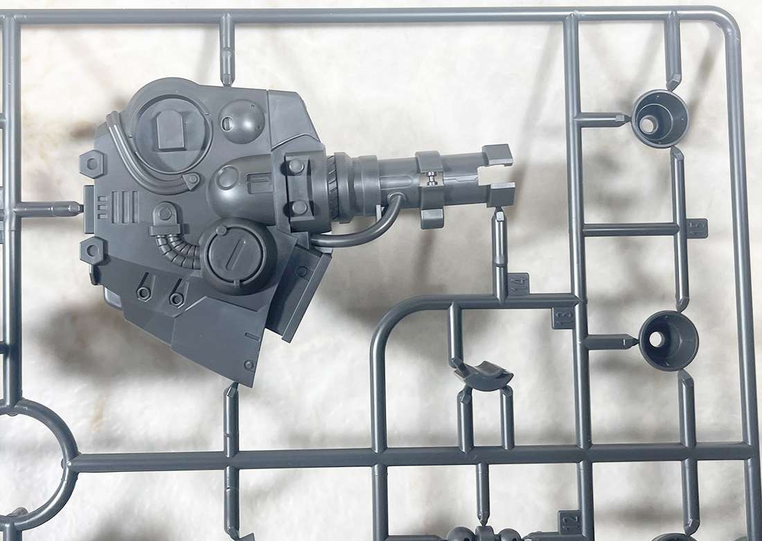 他にも合わせ目が出ますね。肩アーマーと胸部、あと銃くらいですね。いずれも難易度は低いので安心して作業できますね。
