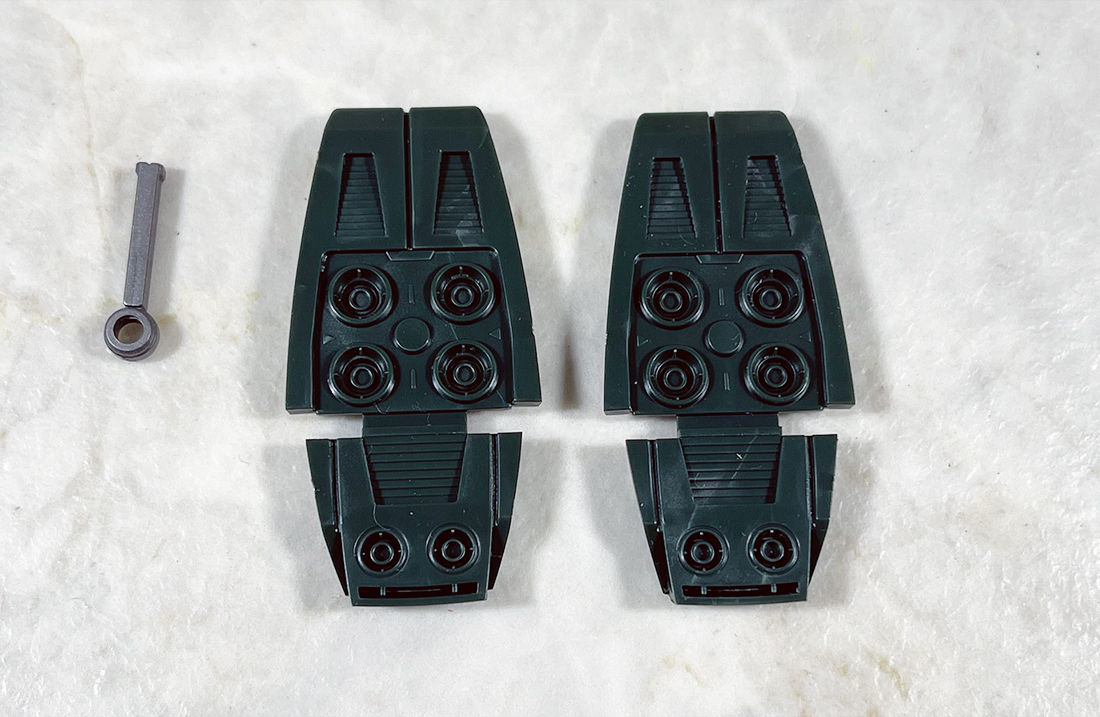 と言いながらも私は塗装するつもりなので後ハメ加工したいと思います。まぁ今更ドヤ顔で語るまでもない定番工作ですね。スネのメカめかしい部分。キットのままだとこいつが挟み込み構造に飲み込まれて塗り分けが困難になります。