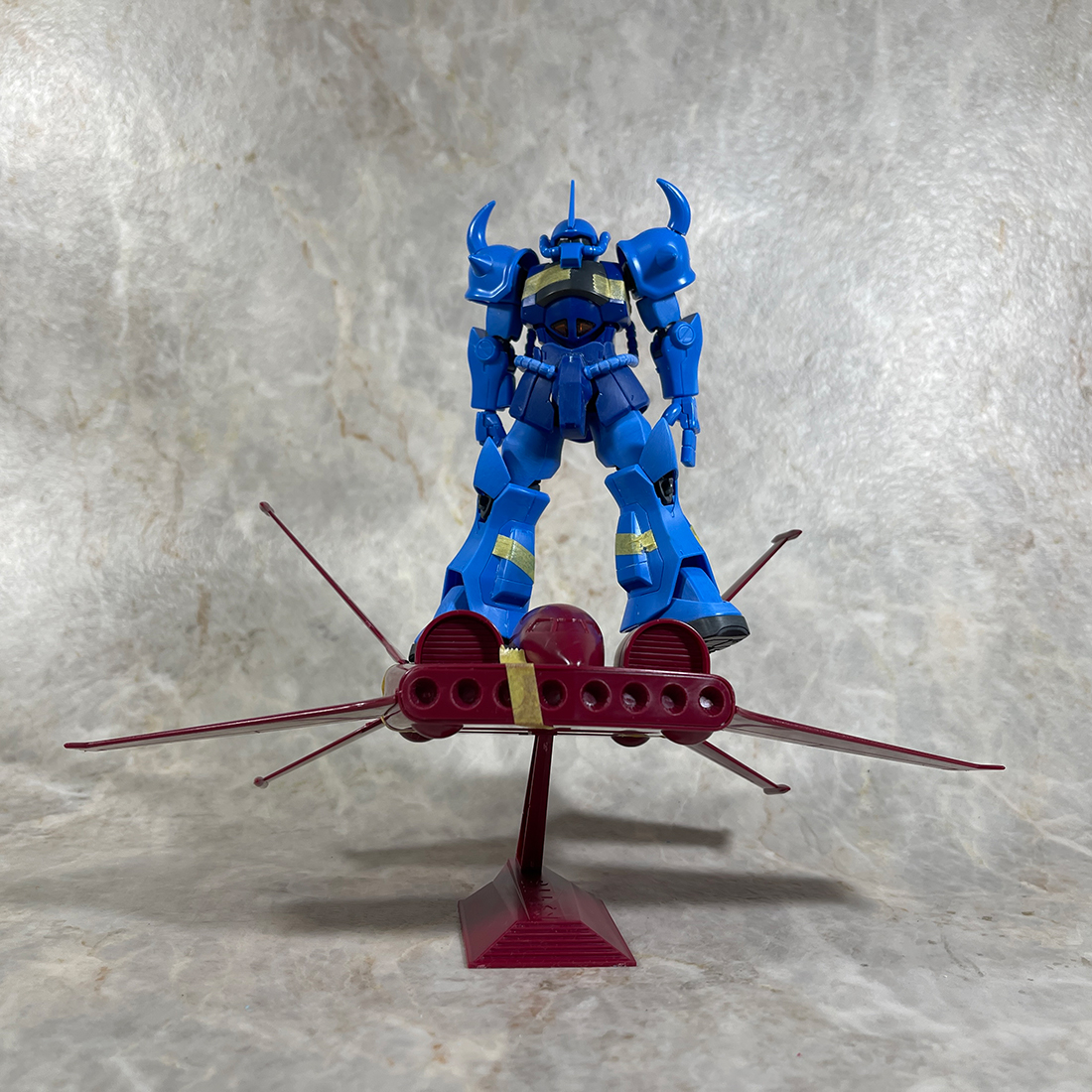あとねサブフライトシステムお馴染み、毎度のごとくネオジム磁石を仕込んで少しでも安定的にいろんなポーズが取れるようにしたいと思います。さらに3ミリ丸棒接続でしっかりグフを乗せるよう務めます。ということで今回は以上です。