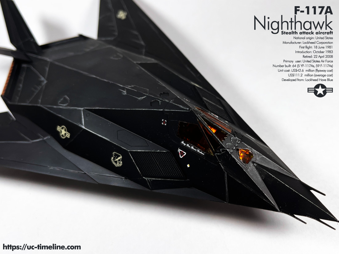 ハセガワ 1/72 F-117 ナイトホークをつくる。その2。 01/25/202601/25/2026 UCTL コメントをする 日頃ガンプラメインだけどたまには飛行機プラモに挑戦してみたいという方にとってこのハセガワ 1/72 F-117というキットは、「でかい」「部品少ない」「塗り分けし易い」「かっこ良い」「安い」とデビュー戦にうってつけでして、今回はお手軽に完成させるというコンセプトで着くていきたいと思います。 続きを読む