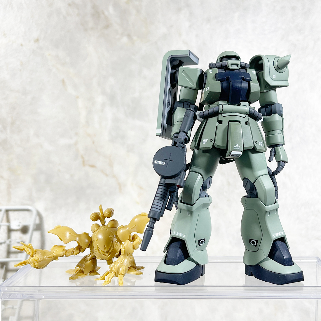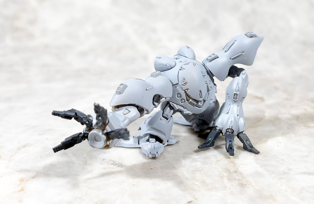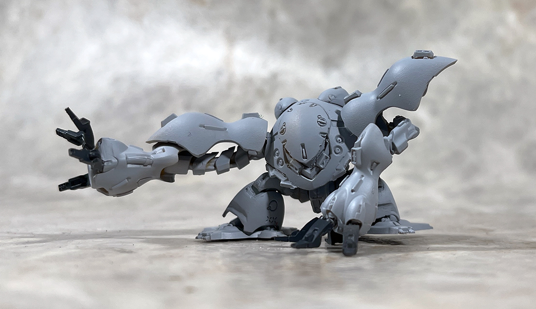 久しぶりにネオジオング以外のもんでもやってみますか、食玩ハイゴッグです。この旧キット箱絵のポーズやっぱいいすよねぇ。