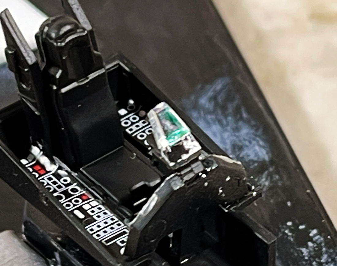 DLIR (赤外線下方監視装置)およびFLIR (前方監視型赤外線装置)の窓にもオーロラグリーンを貼ります。
