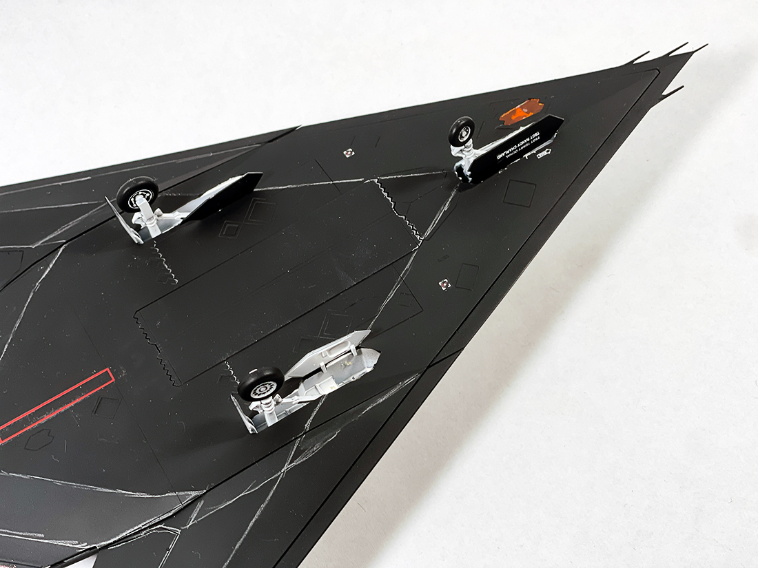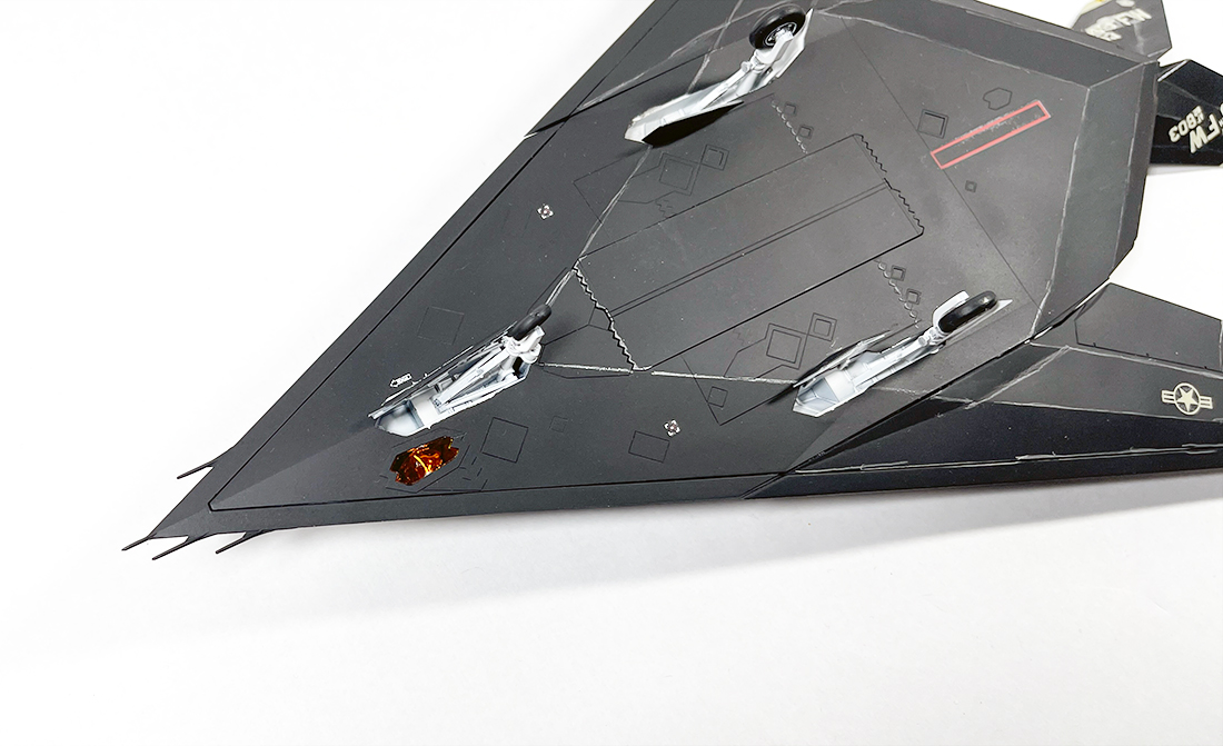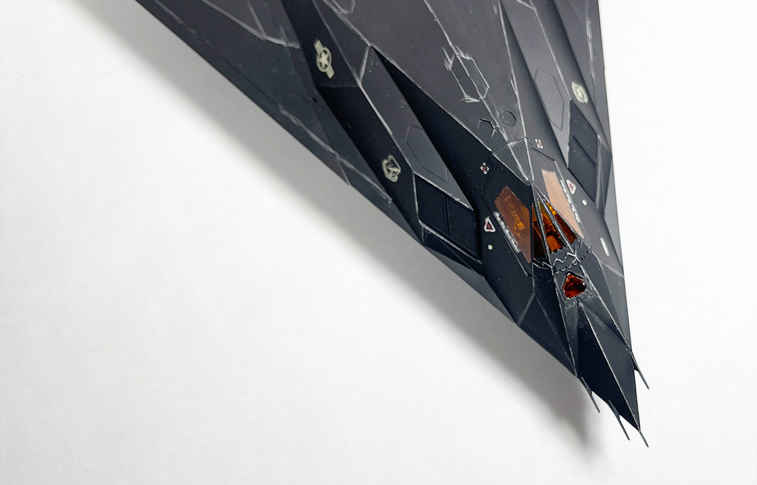 しかも機体デザインの特性上、コックピットをまず作って塗装もしてから胴体パーツを左右で挟み込むという飛行機プラモ特有のめんどい工程がF-117の場合ありません。