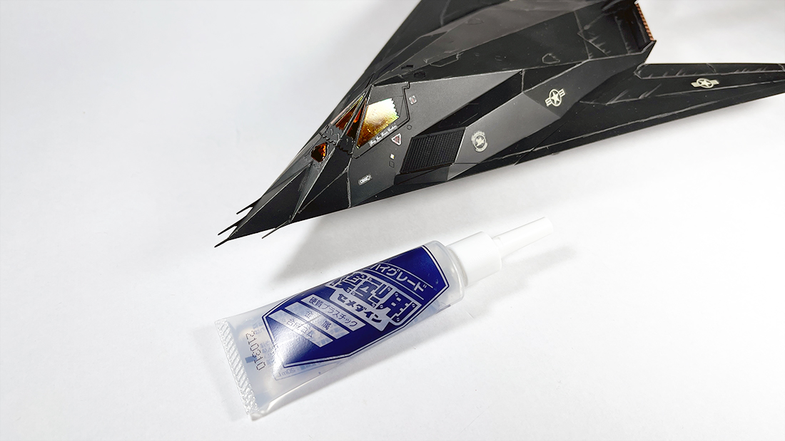 クリアーパーツの取り付けには「ハイグレード模型用セメダイン」を使用しています。