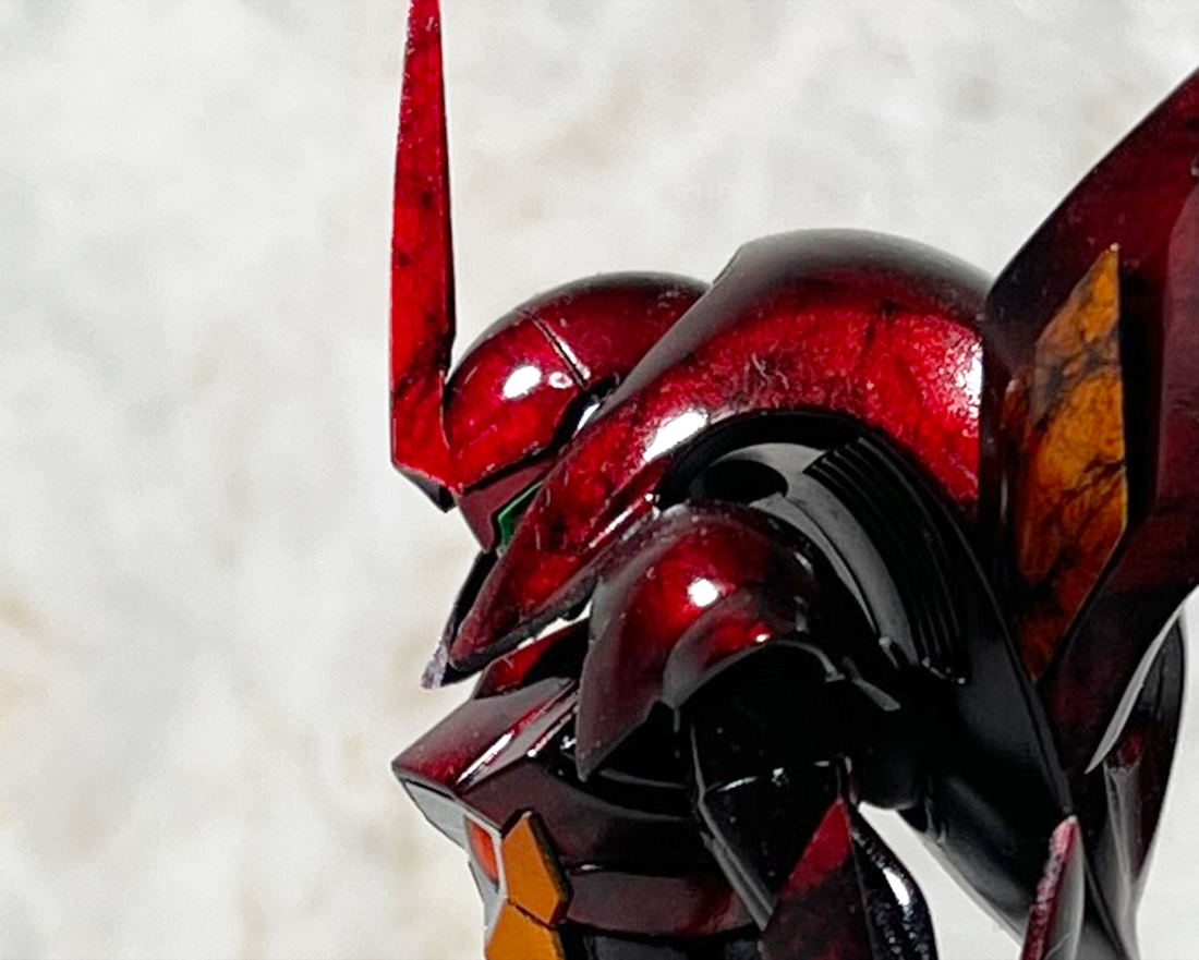 黒い部分もクリアーレッドで何層もコーティングしており赤みがかった仕上がりとなっております。