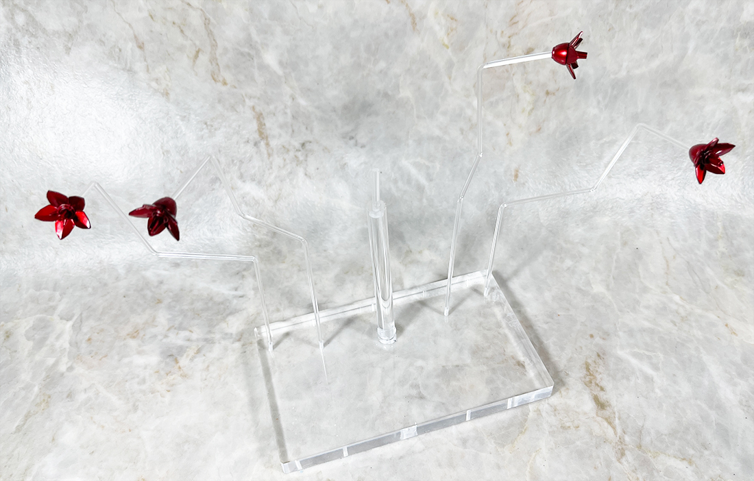 台座はダイソーのアクリルブロック。非常に透明度高くて高級感あります。