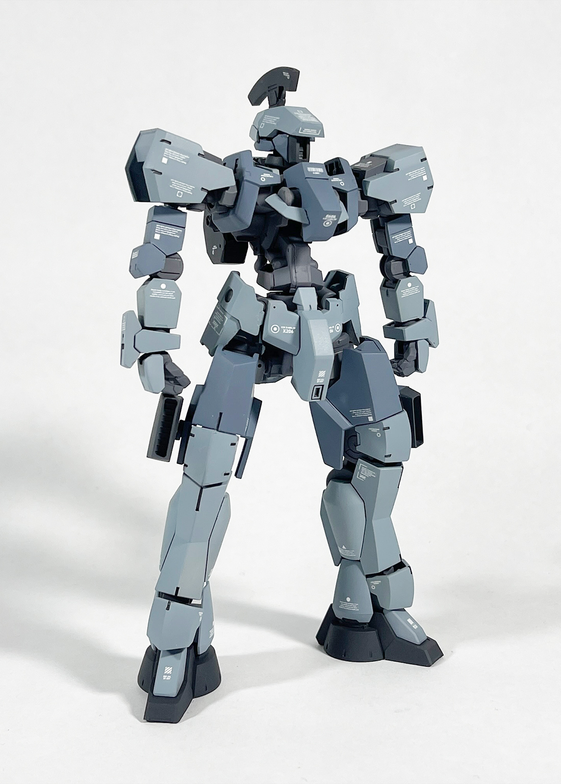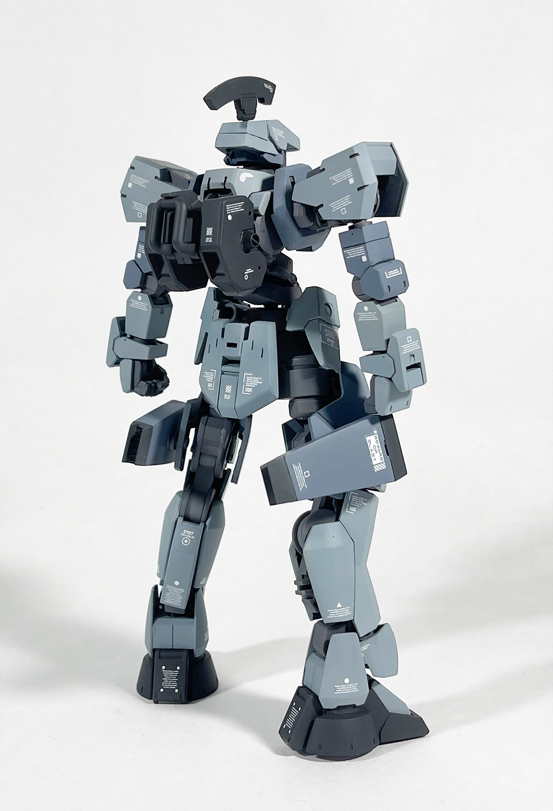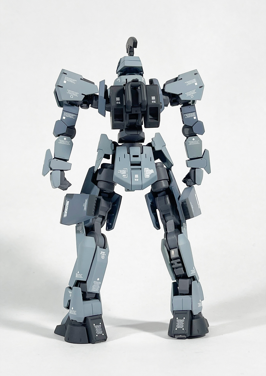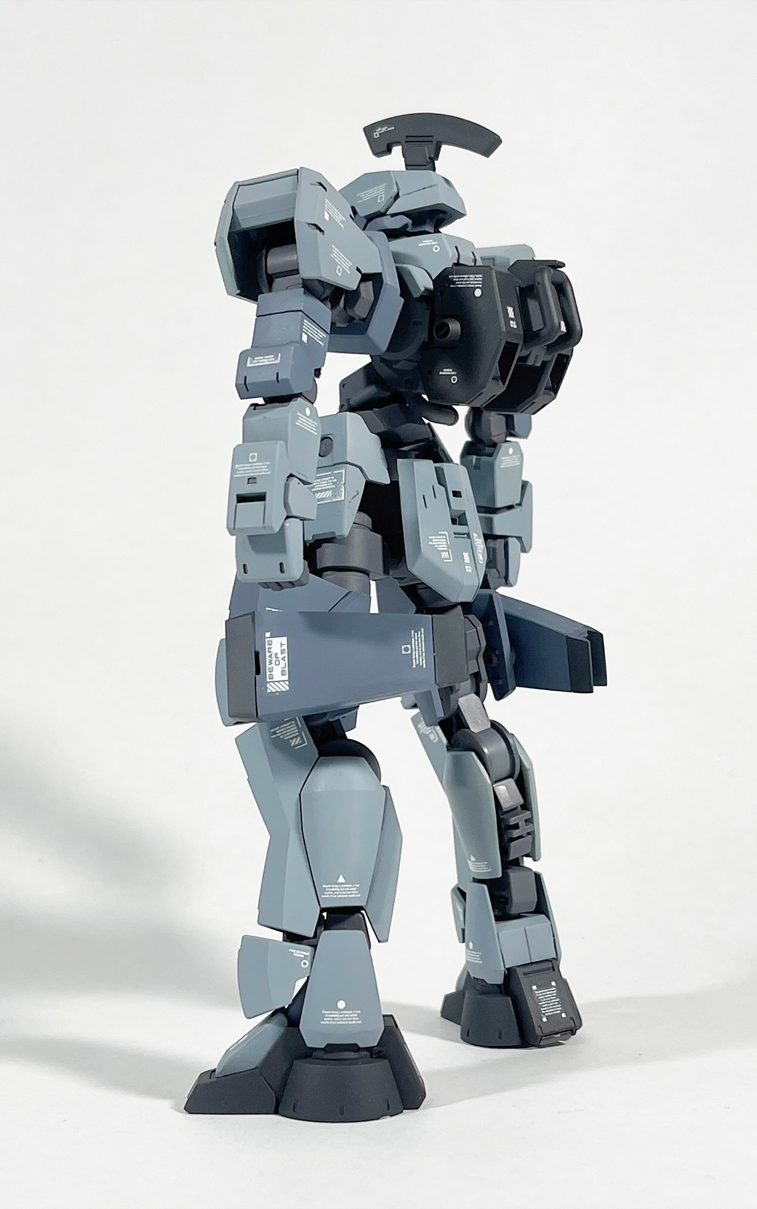 太もものブースターは通常版グレイズのバインダー?みたいなやつを加工して芯にしてプラ板や角バーニア等を使って自作。難航しそうな予感がしてたのですが意外にすんなり形になりました。