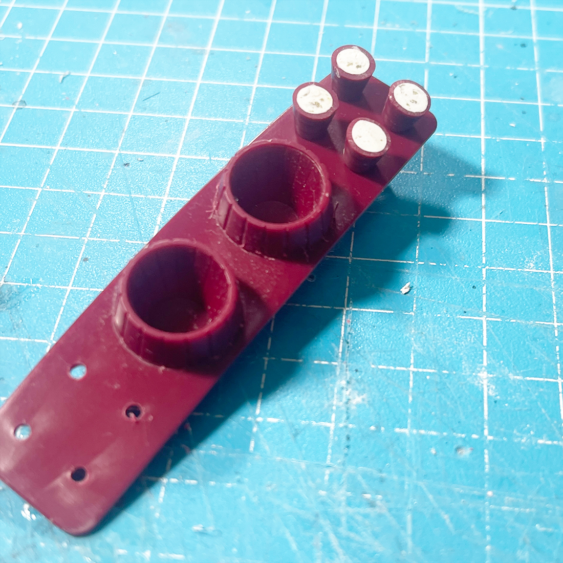 旧キットあるあるなのですが、ピンと受け側の穴の寸法が同径でないため取り付けじスポスポしがちです。それだと紛失や事故が怖いのであらかじめ対策しておきましょう。このキットに限らず他のキットでも応用できる作業となります。