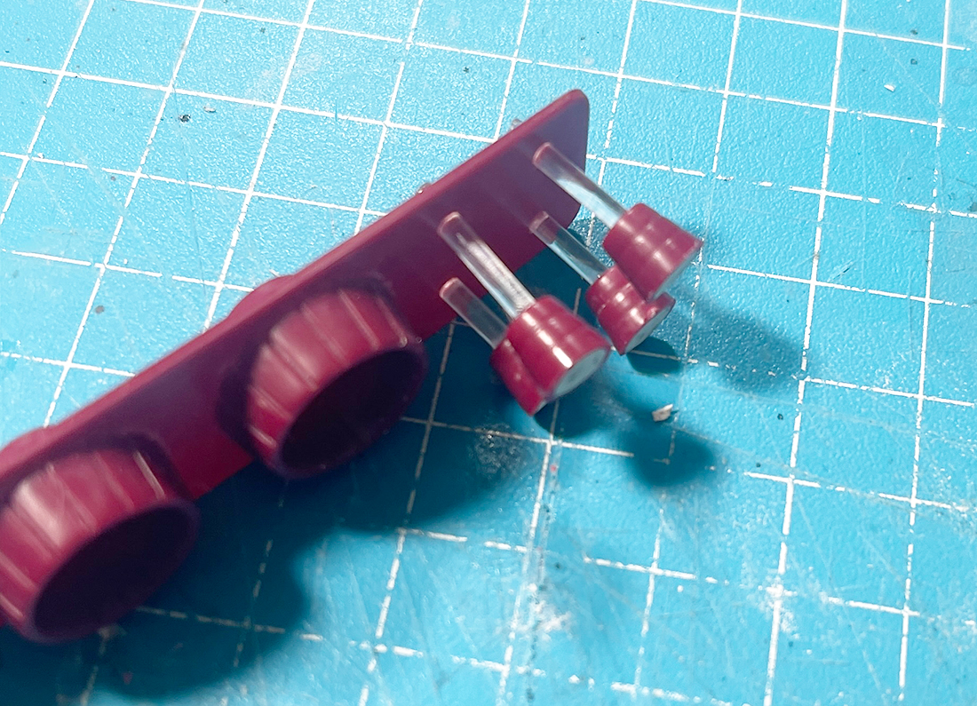 ローゼットワッシャーを固定しやすいようにバーニア内部にエポパテを詰めてます。随分長いことプラモをやってきましたがバーニアをパテで埋めたのは今回が初めてです笑