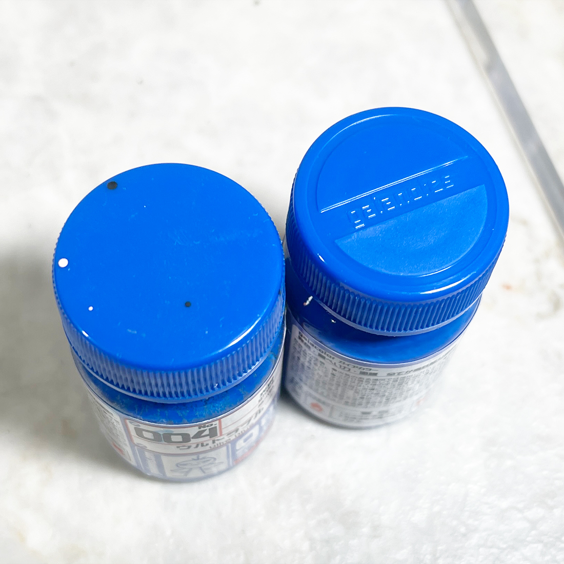 前回買ったのが2016年の7月ですからね、時期的に私がエアブラシ環境を導入したタイミングですね。基本的な色は一式購入したもののひとつで、いかに私がブルー系の塗装を滅多にしていないかよく分かりますね。この手のアニメブルーってなかなか私は出番ないんですよね。