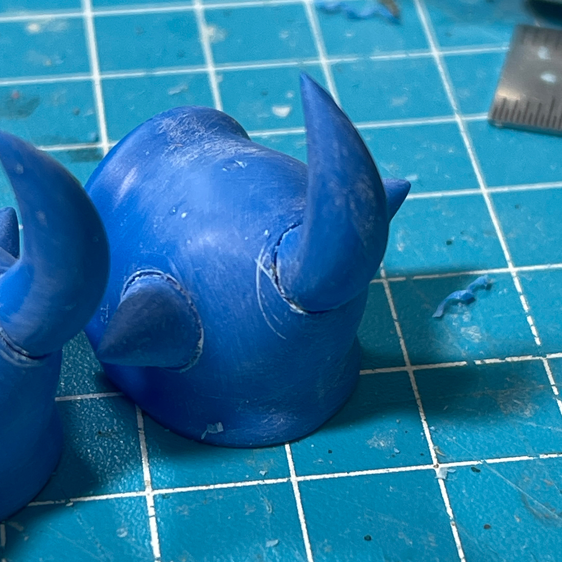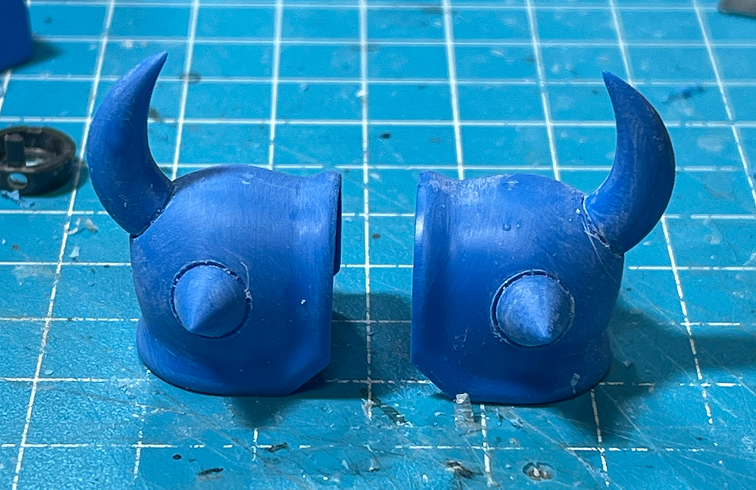 スパイクの根本の境界線もこれまた毎度の如く彫り込んで別パーツ感を演出したわけですが、刃が脱線してあらぬ方向にキズが何本も入ってしまいましたね、こういう作業は肩の力を抜いて優しくトレースを繰り返せば彫れますからね、そうとわかっていても先を急いでこのように脱線してしまいますね。私は。