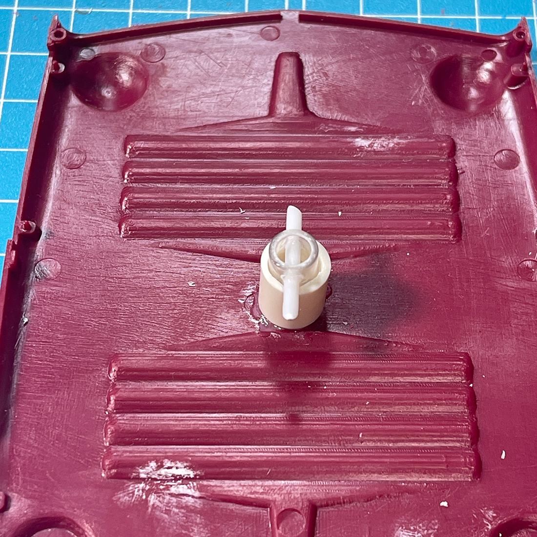 やすりがけして穴の高さをキット外装表面とツライチになるようにしました。