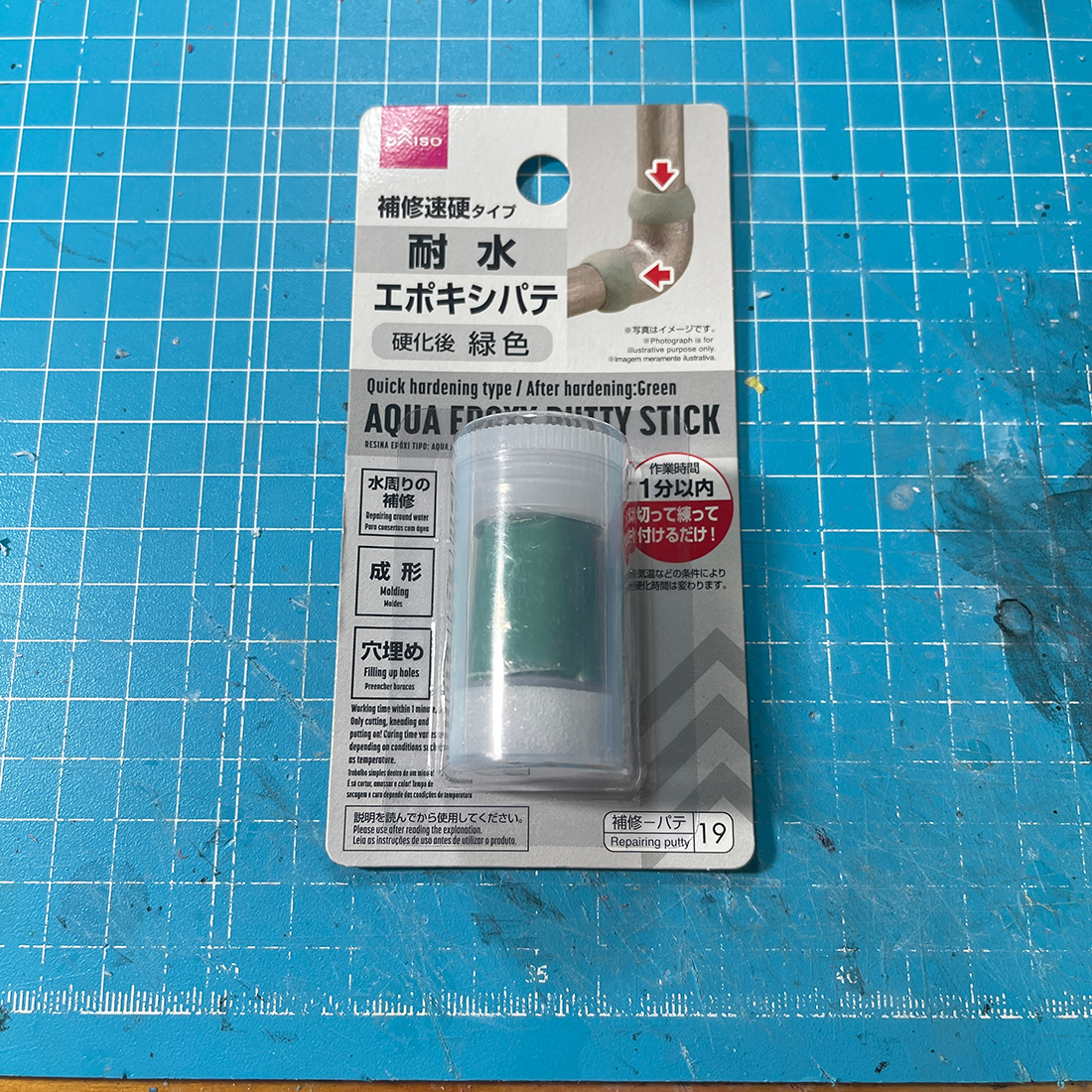 当ブログお馴染みのダイソーエポパテ。今回はいつものと異なり緑色の水回り用ってやつを試しに使ってみましょうか。