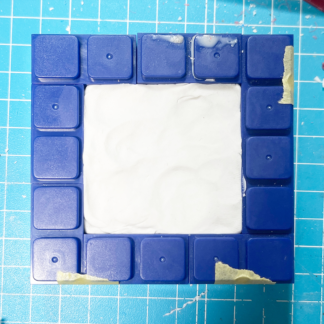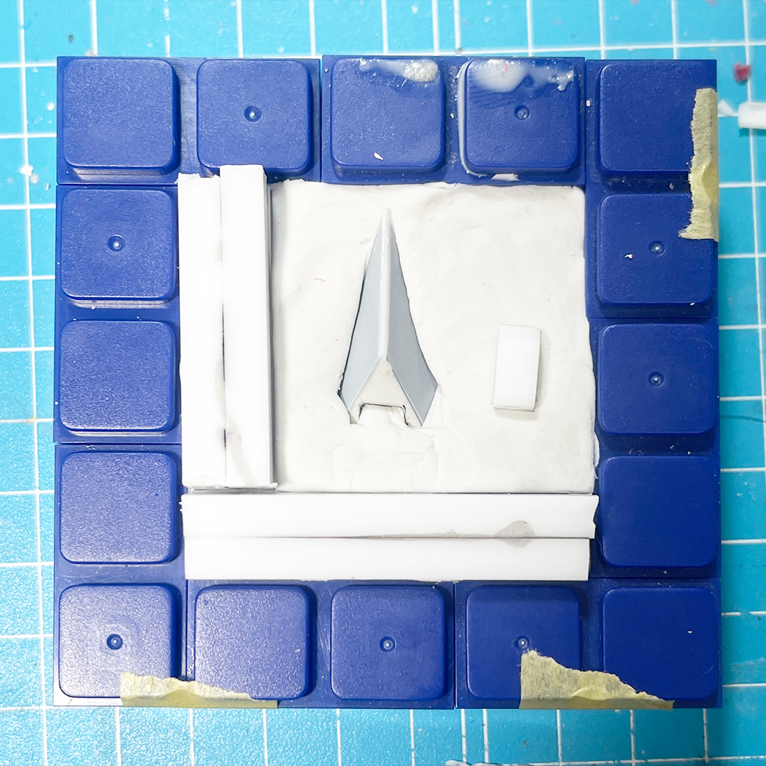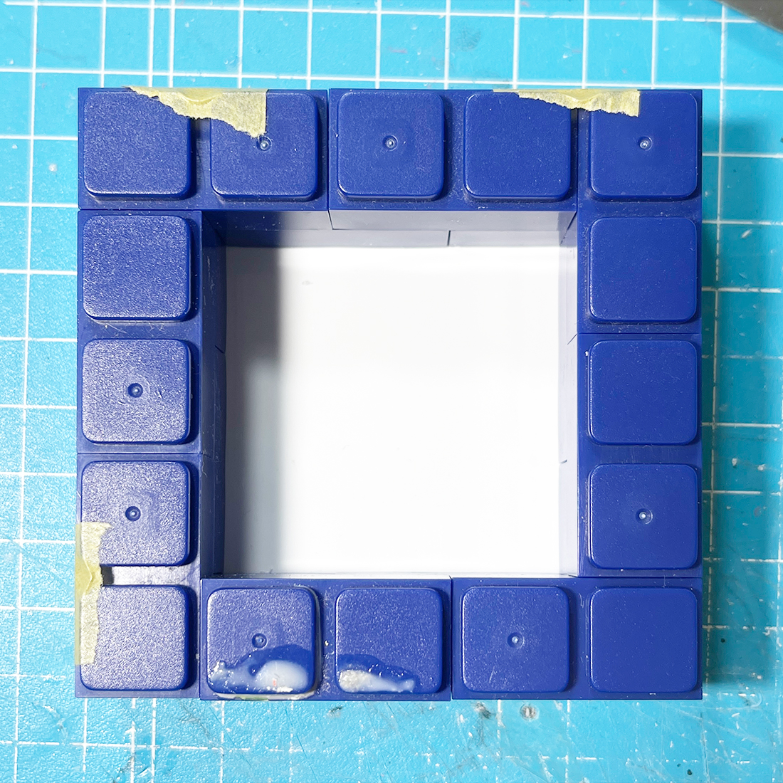 ブロックで枠を作りました。底にはプラ板を貼って貼ってます。マスキングテープで貼ってます。