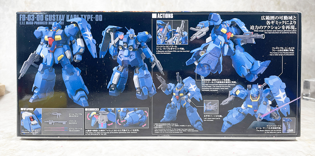 ここのところ毎晩HGUCネオジオングの記事ばかりでちょっとアタマおかしくなりそうだったので(笑)たまには違うキットもやってみますか、HGUCグスタフ・カール00型です。今日ヨドバシ博多で買ってみました!それにしても箱絵良いすね、私は一作目を劇場で観たのですが、当時の緊迫感溢れる戦闘シーンが脳裏に蘇ってくる画風です。