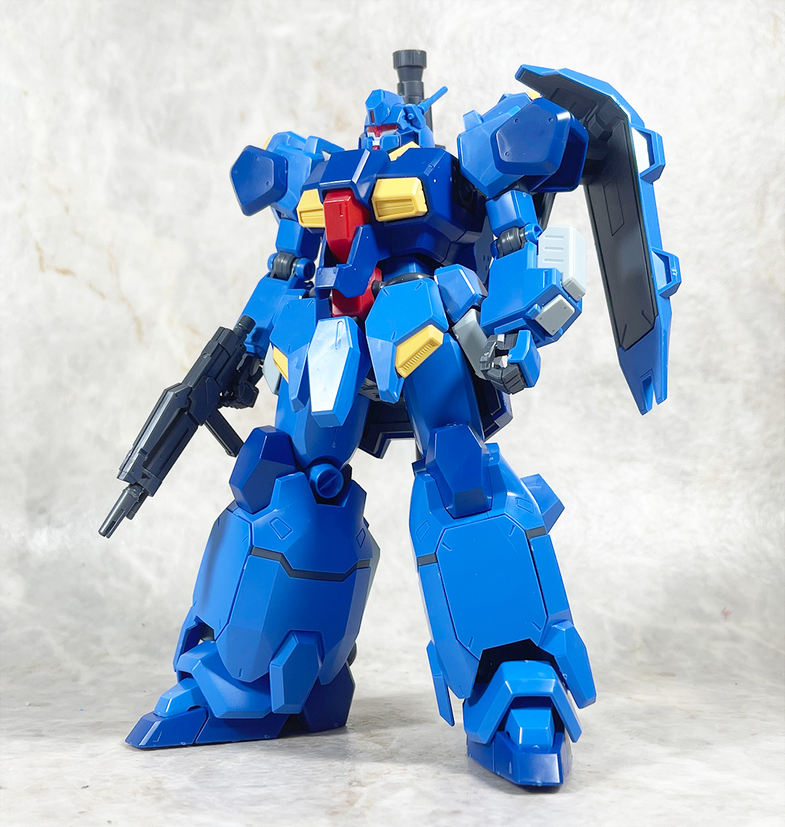 ちょっと変わった量産機を作ってみたいという方にもオススメですね。前腕と後頭部と銃器類と太ももにちょいと合わせ目が出ますがあまり気にならないので消せるところだけ消して既存モールドの彫り直しと少しだけスジ彫り追加する感じで作っていきたいと思います。
