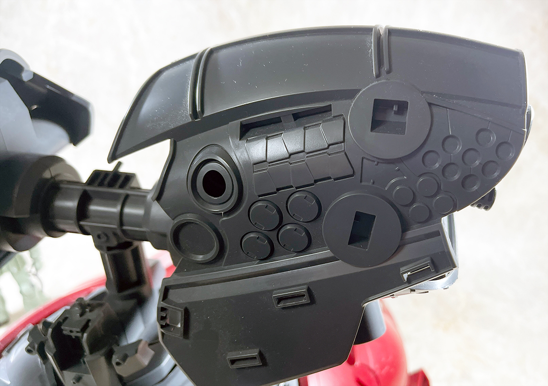 肩につく特徴的なスラスター?インテーク?なんかわからんがスクリュー上の造形部分は塗装してました!いつのまにか無意識のうちに塗ってますね我ながらこわいです。それぞれひとつの部品として成型されておるのですが造形がシャープなのでまるで複数のパーツから成り立ってるように見えます。