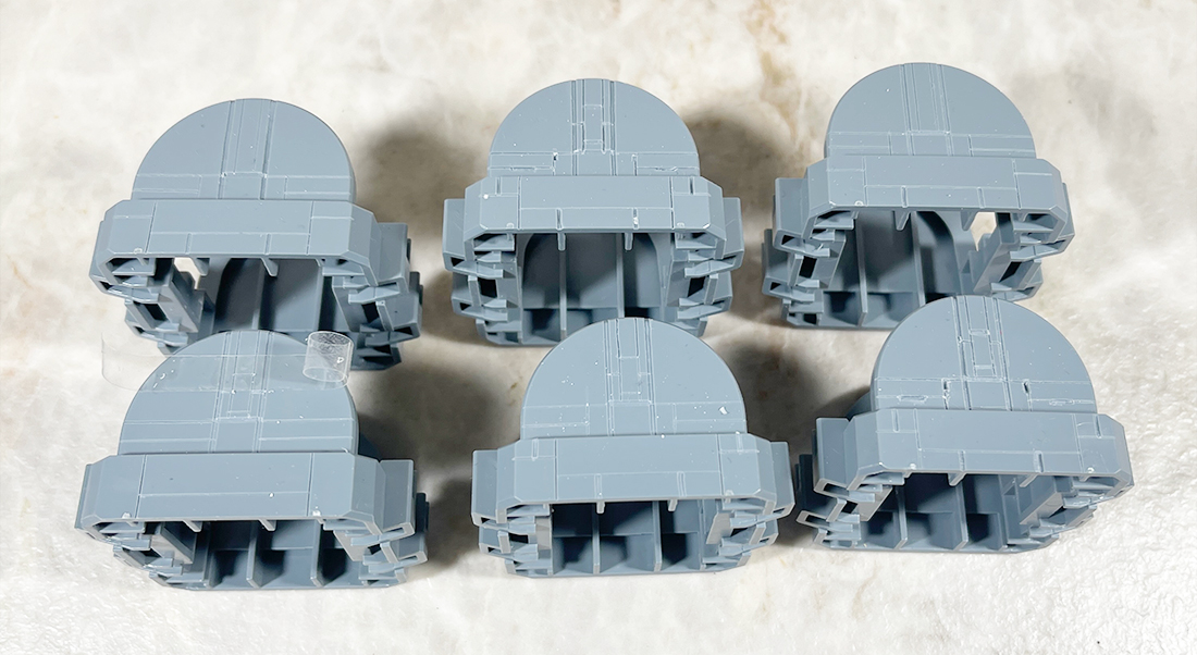 フレームも外装も合わせ目まみれの馬鹿でかい腕が6本もありやがるんでね、裏面も合わせれば単純計算12箇所の長大な合わせ目処理が必要となります。なかなか経験出来ないことなのでモデラーとしては有難い気持ちもありますがやっぱしんどいすね。