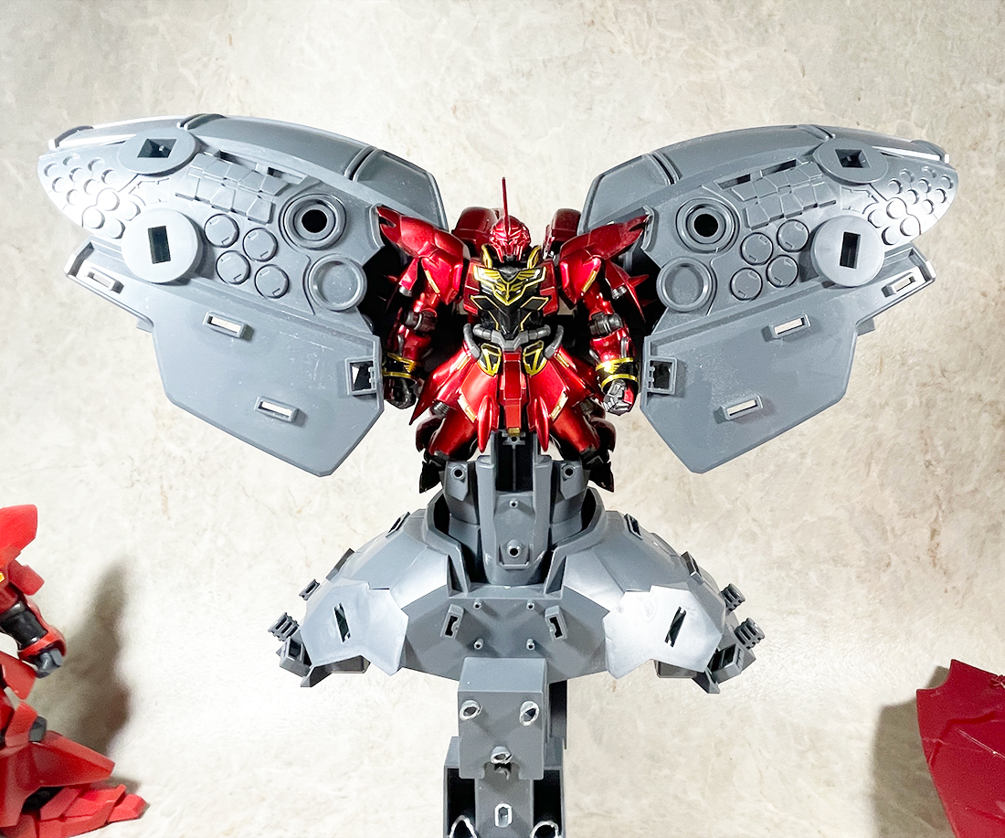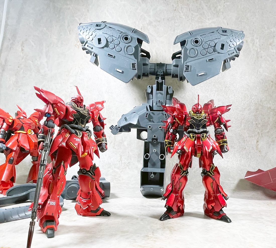 ギッチギチなんでフレーム側を塗装したらシナンジュにめっちゃ色移りしそうだな、と思いましてね。
