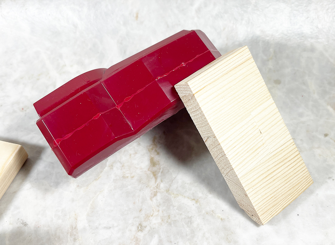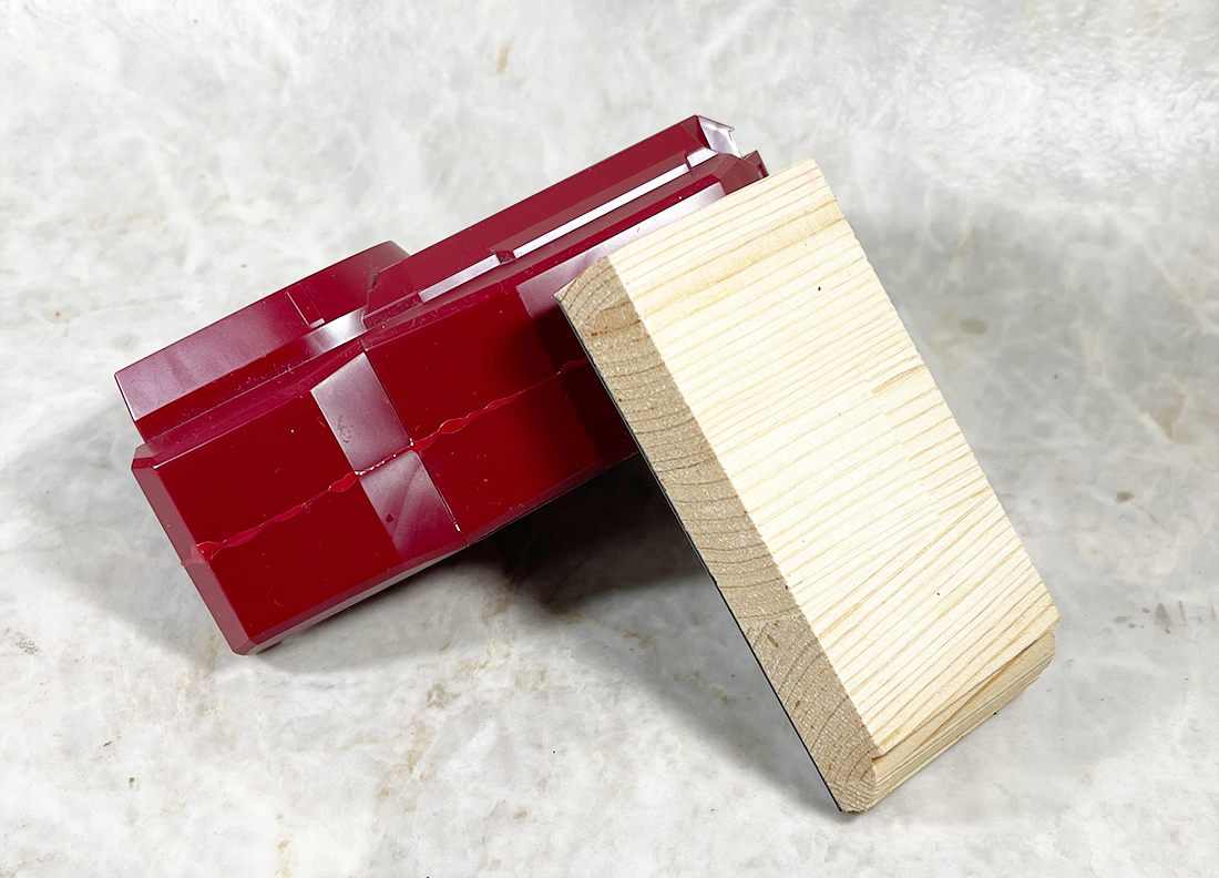 昨日手持ちのやすりがけツールで頑張ってひとつ処理してみたのですが非常に時間がかかりましたし精度にも不満があったので、手持ちの部材でなにか当て木に使えそうなものはないか押し入れを弄ったところ、このようなものが出てきました。