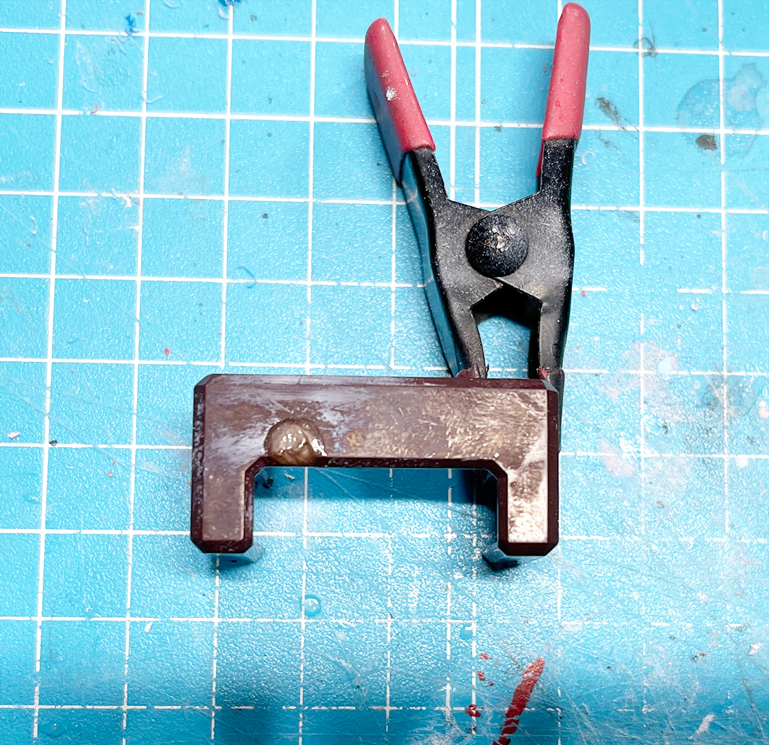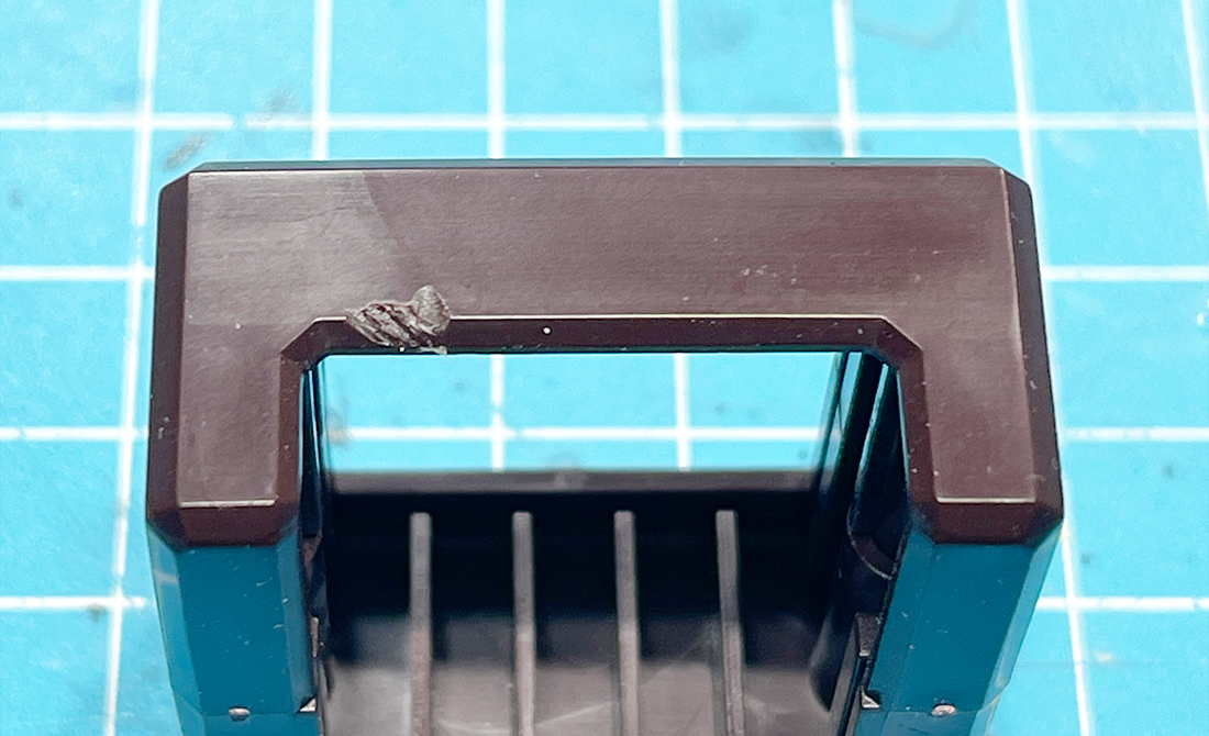 こういうのがひとつ入り込むと作業が停滞するんすわ、目立つ箇所なので黙殺というわけにもいかんので瞬着で補修。
