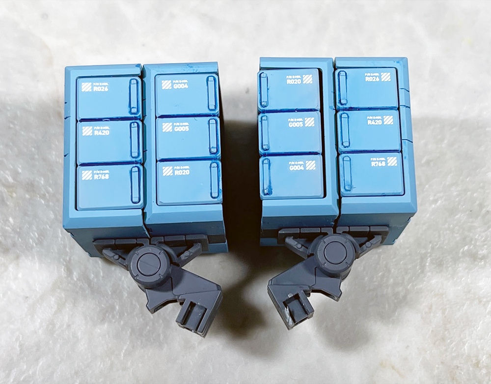 今回キット付属のホイルシールは全て使いました。非常に発色も色味も美しく80’sな香りがします。頭部と銃とシールドに使われています。