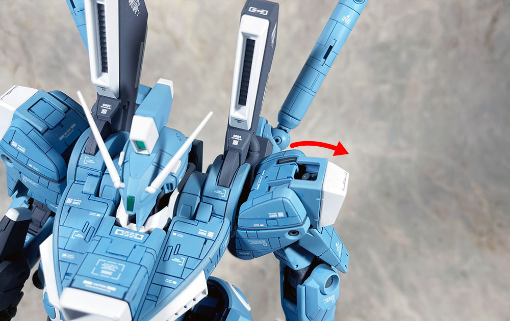 こんな感じで肩アーマーの一部が外側にスライドし接続部が露出する仕様となっております。